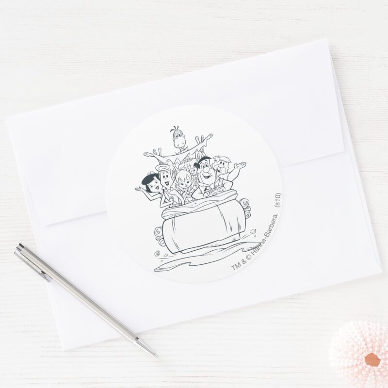 Flintstones Families1 Classic Round Sticker vinyl sticker, waterproof durable collectible sticker for laptop, phone, bottle, bike, notebook, helmet, and accessories.