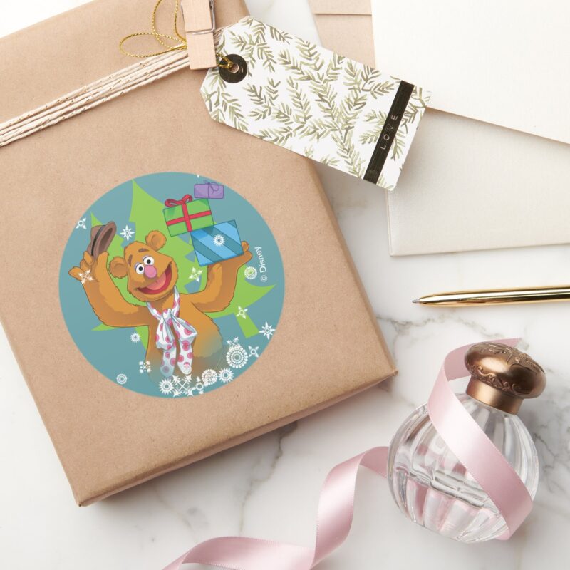 Fozzy The Bear Happy Holidays Classic Round Sticker vinyl sticker, waterproof durable collectible sticker for laptop, phone, bottle, bike, notebook, helmet, and accessories.