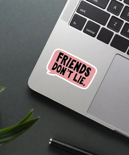 Friends Dont Lie Sticker vinyl sticker, waterproof durable collectible sticker for laptop, phone, bottle, bike, notebook, helmet, and accessories.