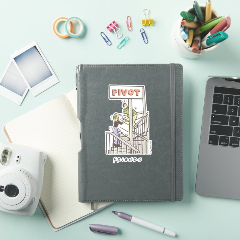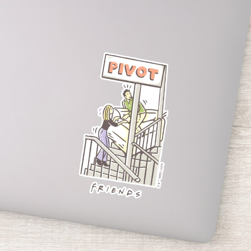 FRIENDS™ Ross And Rachel PIVOT Sticker vinyl sticker, waterproof durable collectible sticker for laptop, phone, bottle, bike, notebook, helmet, and accessories.
