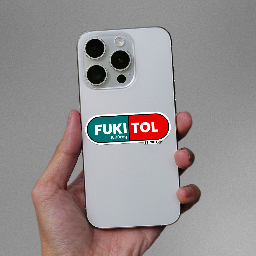 Fukitol Sticker vinyl sticker, waterproof durable collectible sticker for laptop, phone, bottle, bike, notebook, helmet, and accessories.
