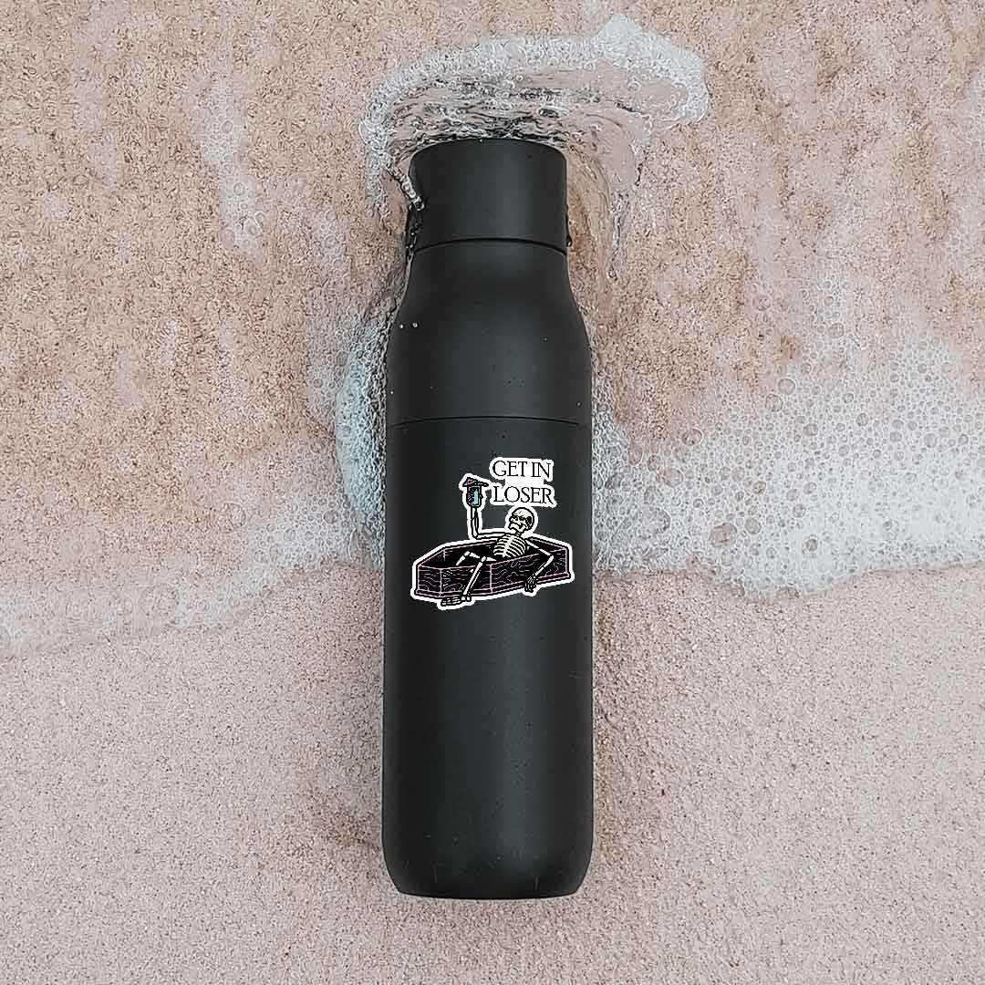 Get In Loser Sticker vinyl sticker, waterproof durable collectible sticker for laptop, phone, bottle, bike, notebook, helmet, and accessories.