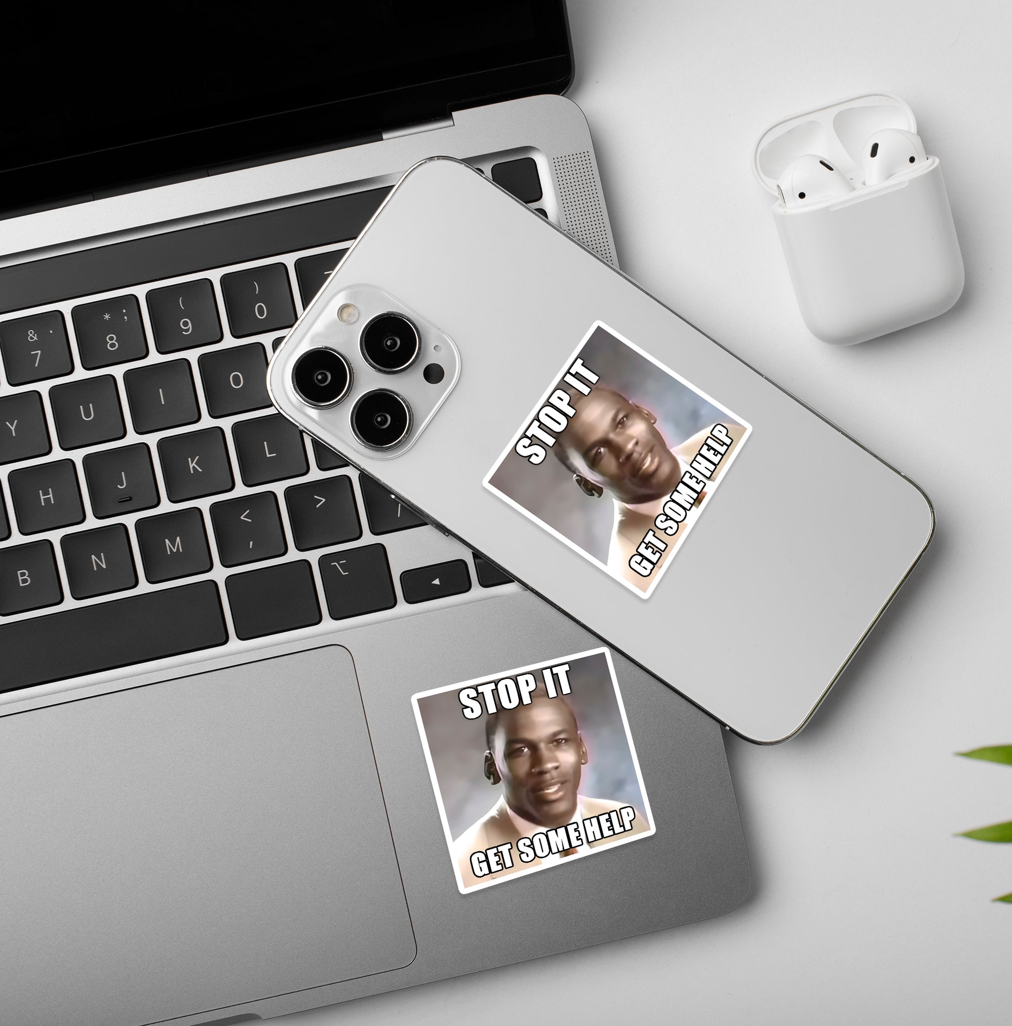 Get Some Help Meme Laptop Mobile Stickers