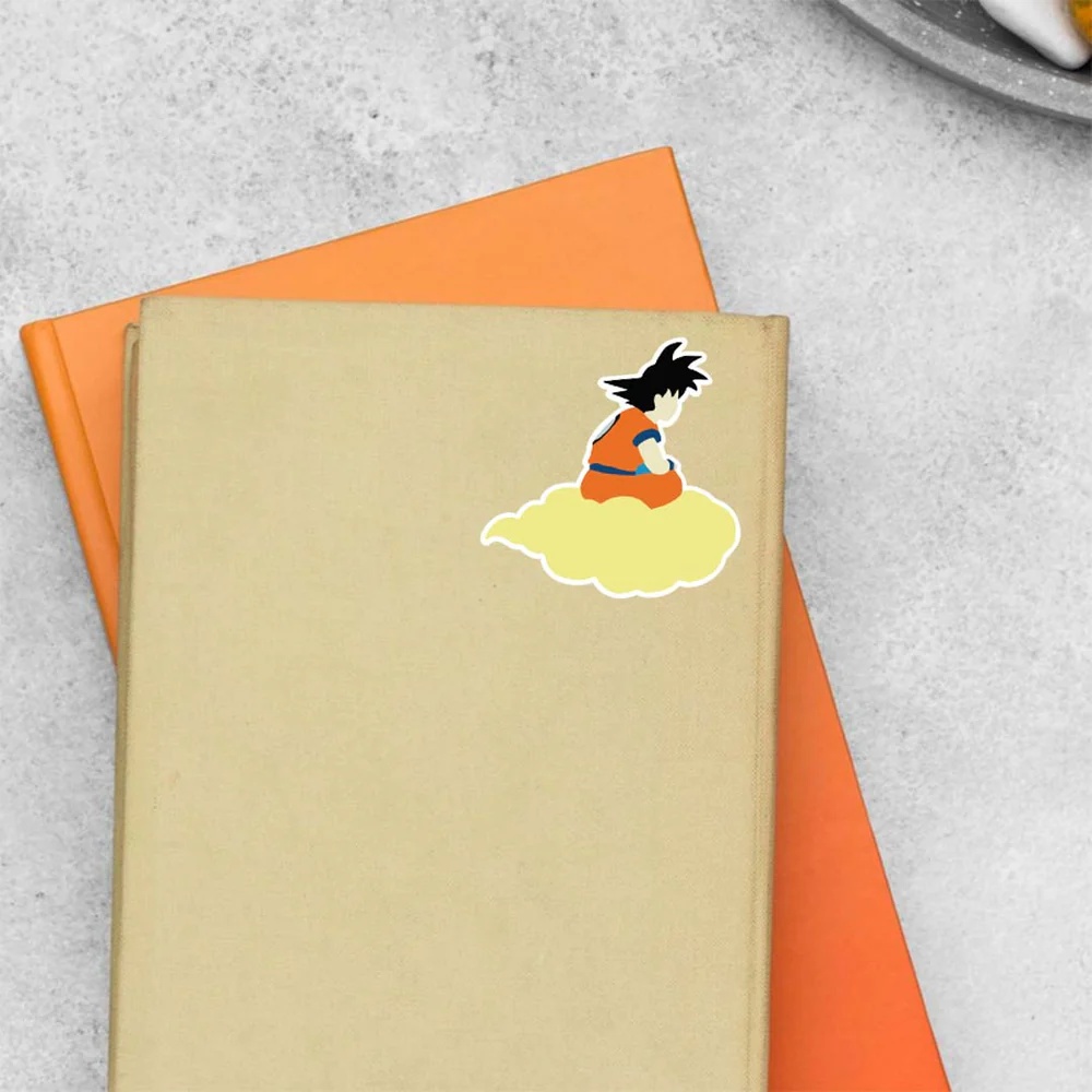 Goku On Nimbus Anime Stickers vinyl sticker, waterproof durable collectible sticker for laptop, phone, bottle, bike, notebook, helmet, and accessories.