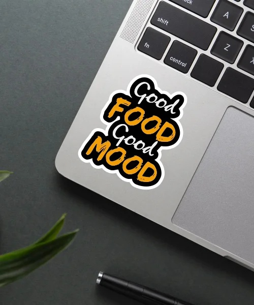 Good Food Good Mood Sticker vinyl sticker, waterproof durable collectible sticker for laptop, phone, bottle, bike, notebook, helmet, and accessories.