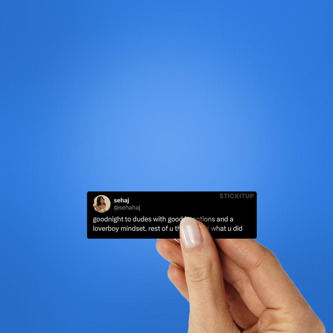 Goodnight To Dudes Sticker vinyl sticker, waterproof durable collectible sticker for laptop, phone, bottle, bike, notebook, helmet, and accessories.
