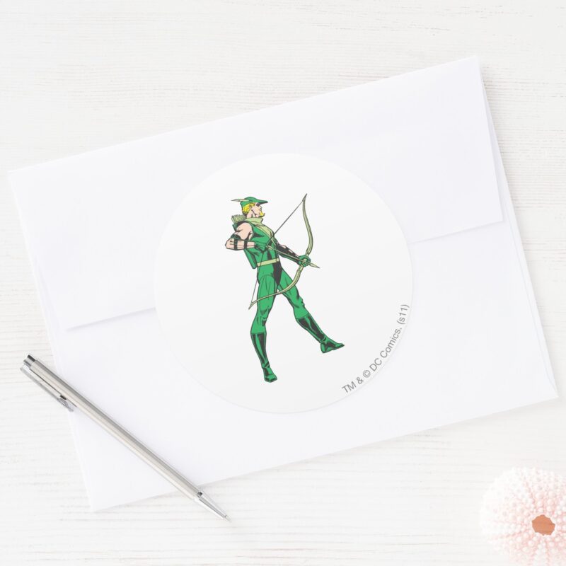 Green Arrow Profile Classic Round Sticker vinyl sticker, waterproof durable collectible sticker for laptop, phone, bottle, bike, notebook, helmet, and accessories.