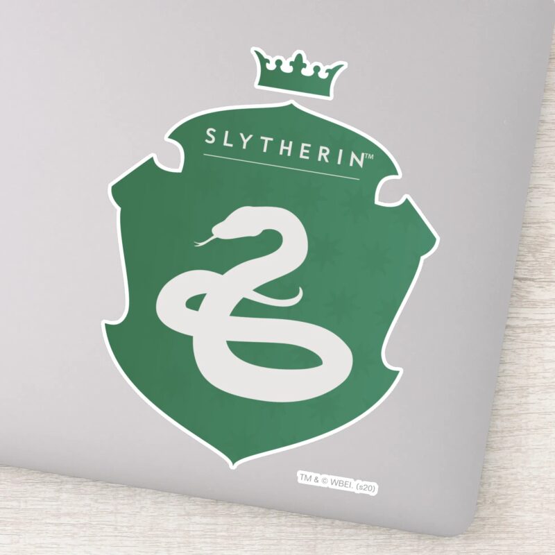 Green SLYTHERIN™ Crowned Crest Sticker vinyl sticker, waterproof durable collectible sticker for laptop, phone, bottle, bike, notebook, helmet, and accessories.