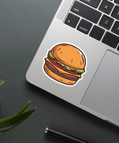 Hamburger Sticker vinyl sticker, waterproof durable collectible sticker for laptop, phone, bottle, bike, notebook, helmet, and accessories.