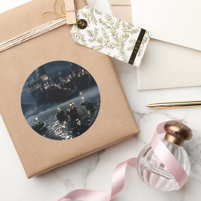 Harry Potter Castle Arrival At Hogwarts Classic Round Sticker vinyl sticker, waterproof durable collectible sticker for laptop, phone, bottle, bike, notebook, helmet, and accessories.