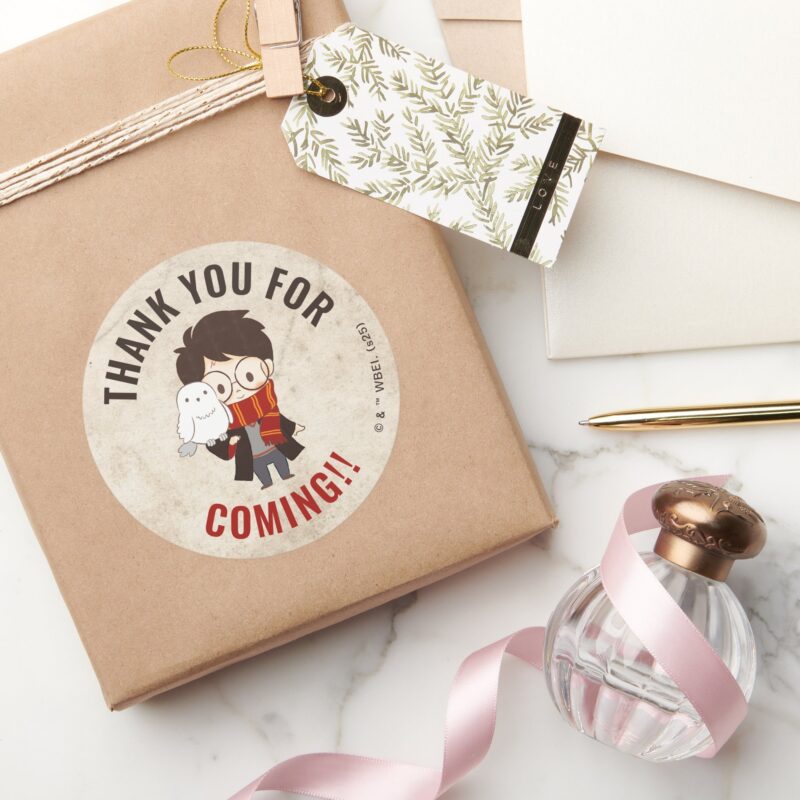 HARRY POTTER™ Character Magical Arch Birthday Classic Round Sticker vinyl sticker, waterproof durable collectible sticker for laptop, phone, bottle, bike, notebook, helmet, and accessories.