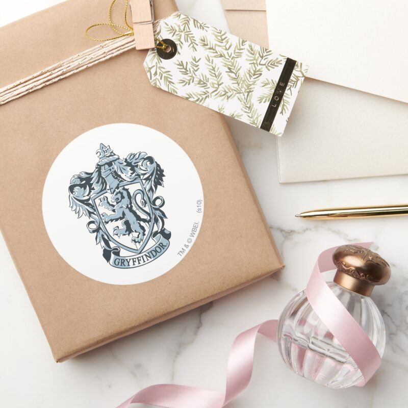 Harry Potter Gryffindor Crest Blue Classic Round Sticker vinyl sticker, waterproof durable collectible sticker for laptop, phone, bottle, bike, notebook, helmet, and accessories.