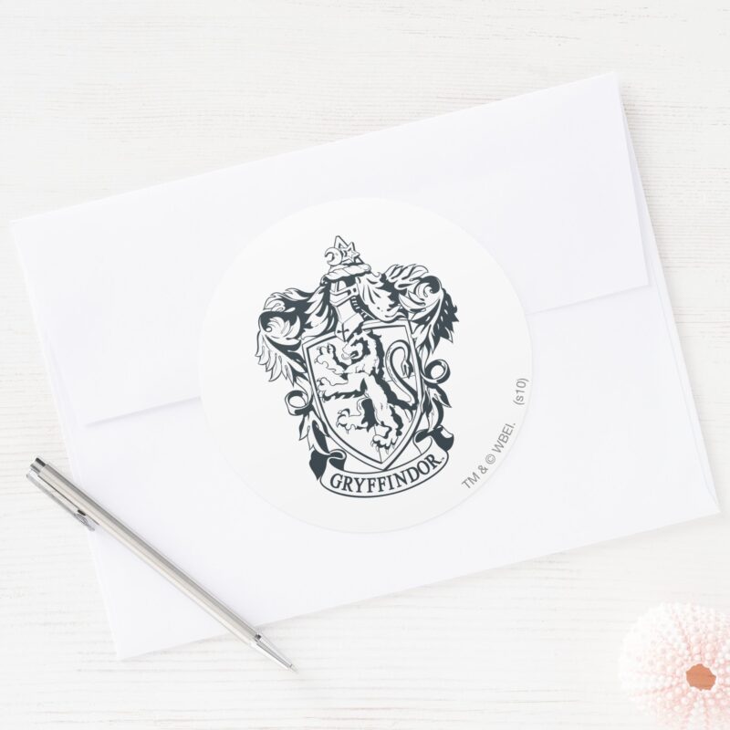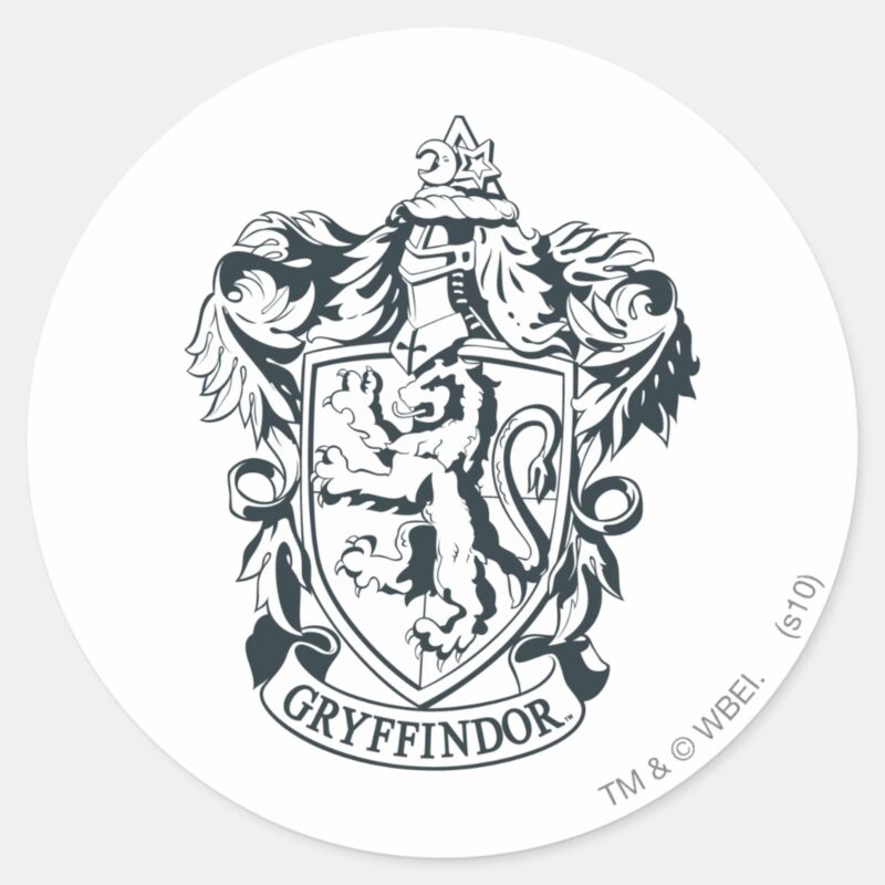 Harry Potter Gryffindor Stencil Sketch Classic Round Sticker vinyl sticker, waterproof durable collectible sticker for laptop, phone, bottle, bike, notebook, helmet, and accessories.