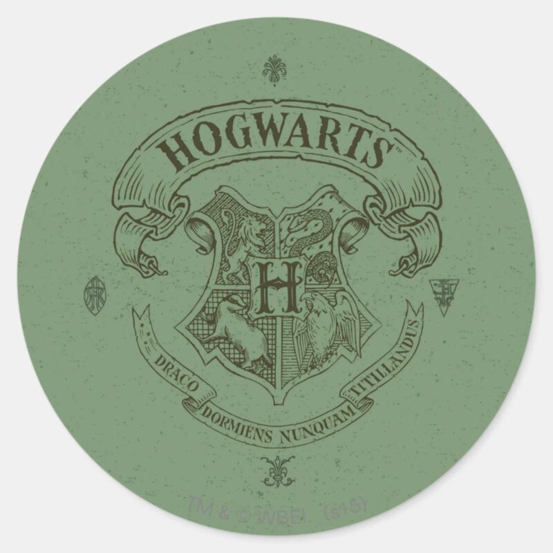 Harry Potter Hogwarts Banner Crest Classic Round Sticker vinyl sticker, waterproof durable collectible sticker for laptop, phone, bottle, bike, notebook, helmet, and accessories.