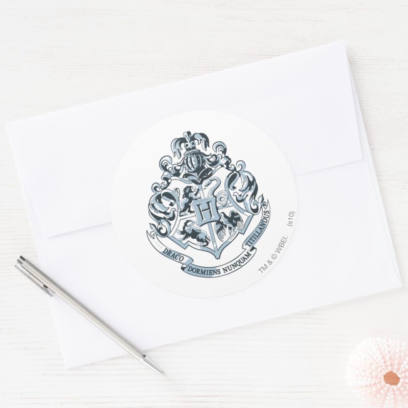 Harry Potter Hogwarts Crest Blue Classic Round Sticker vinyl sticker, waterproof durable collectible sticker for laptop, phone, bottle, bike, notebook, helmet, and accessories.