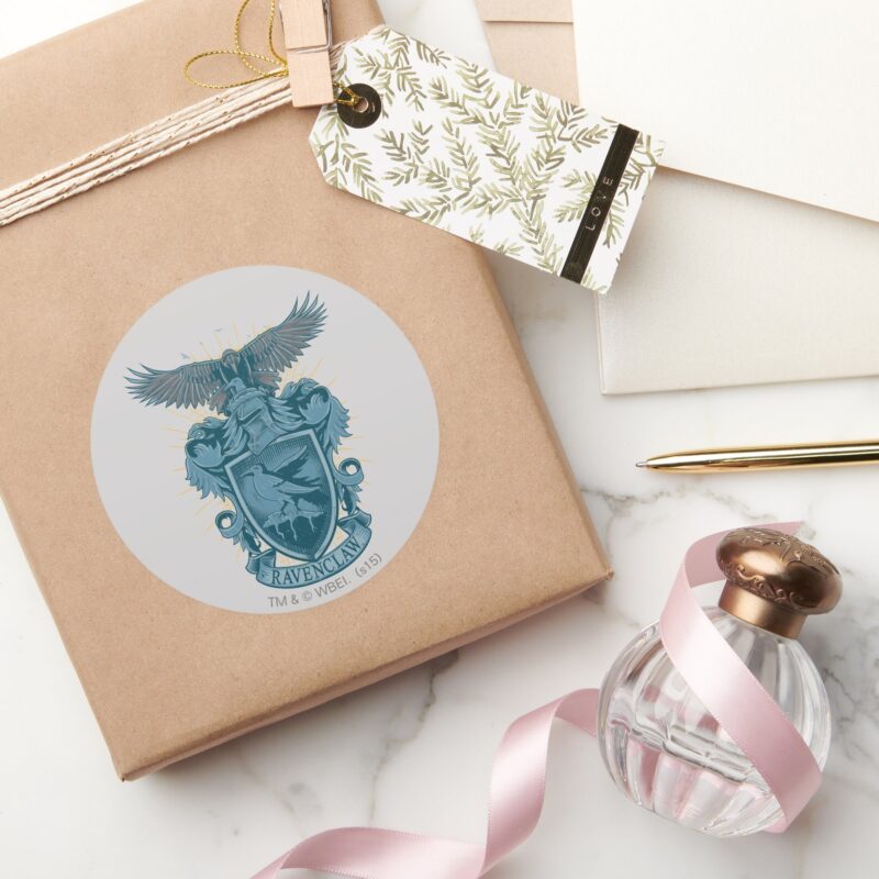 Harry Potter Ravenclaw Crest Classic Round Sticker vinyl sticker, waterproof durable collectible sticker for laptop, phone, bottle, bike, notebook, helmet, and accessories.