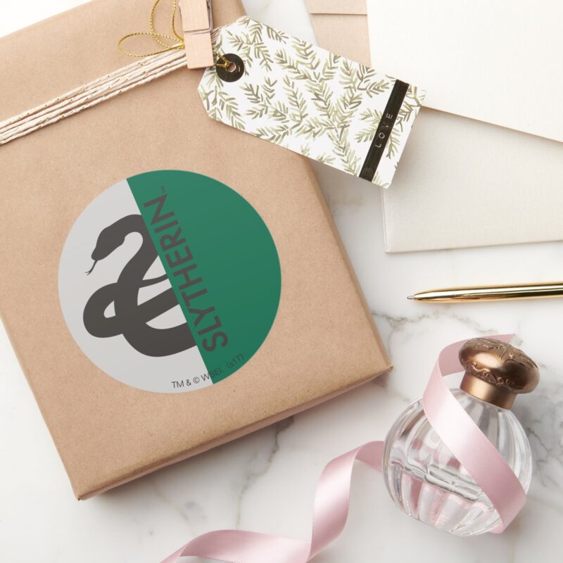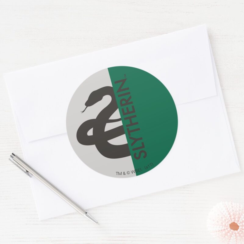 Harry Potter Slytherin House Pride Graphic Classic Round Sticker vinyl sticker, waterproof durable collectible sticker for laptop, phone, bottle, bike, notebook, helmet, and accessories.