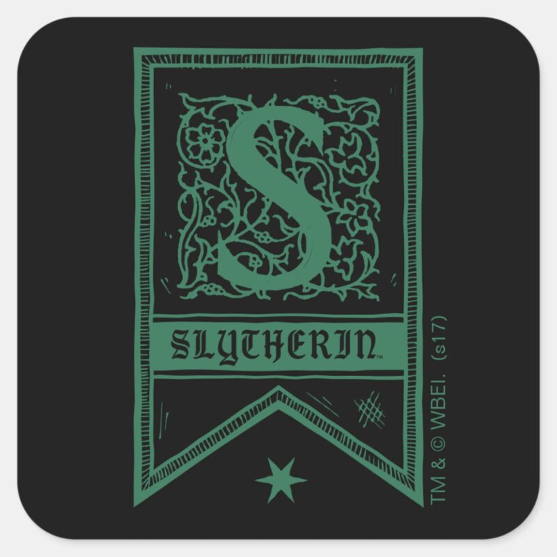 Harry Potter Slytherin Monogram Banner Square Sticker vinyl sticker, waterproof durable collectible sticker for laptop, phone, bottle, bike, notebook, helmet, and accessories.