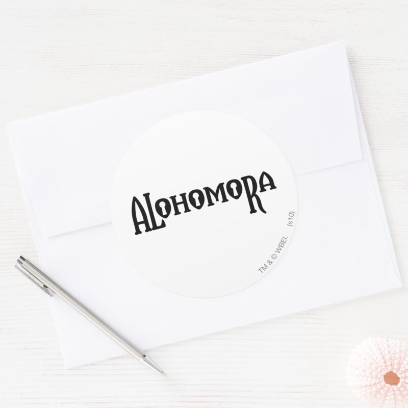 Harry Potter Spell Alohomora Classic Round Sticker vinyl sticker, waterproof durable collectible sticker for laptop, phone, bottle, bike, notebook, helmet, and accessories.