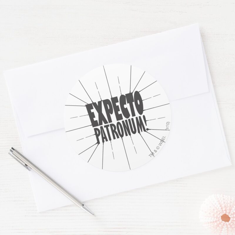 Harry Potter Spell EXPECTO PATRONUM™ Classic Round Sticker vinyl sticker, waterproof durable collectible sticker for laptop, phone, bottle, bike, notebook, helmet, and accessories.