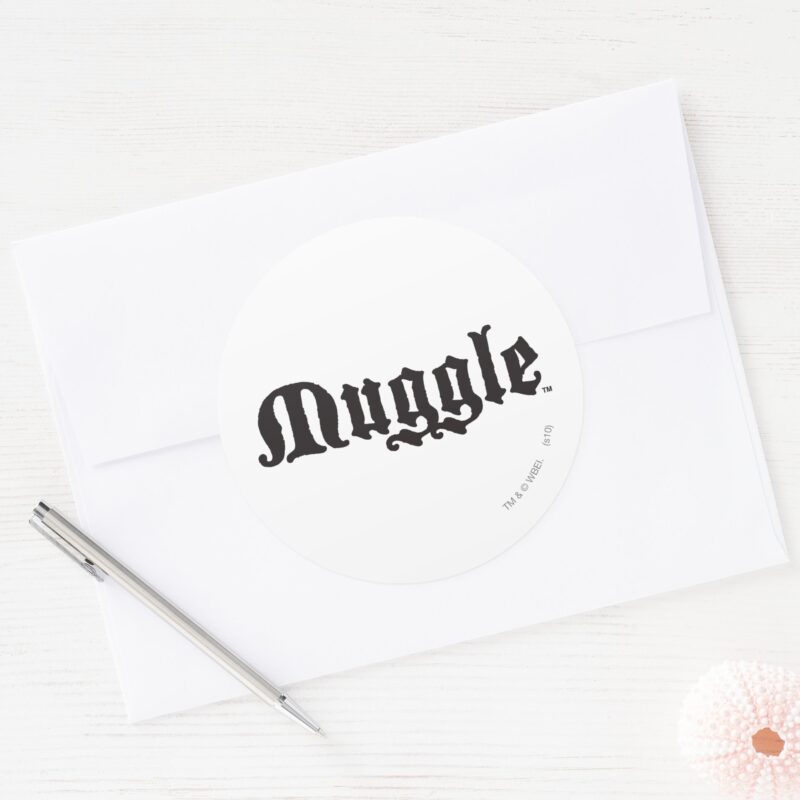 Harry Potter Spell Muggle Classic Round Sticker vinyl sticker, waterproof durable collectible sticker for laptop, phone, bottle, bike, notebook, helmet, and accessories.