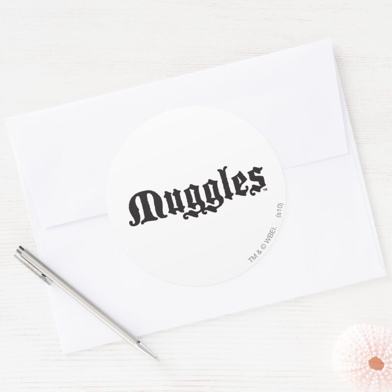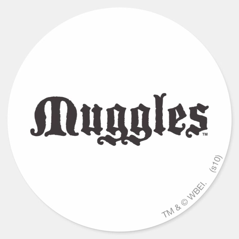 Harry Potter Spell Muggles Classic Round Sticker vinyl sticker, waterproof durable collectible sticker for laptop, phone, bottle, bike, notebook, helmet, and accessories.