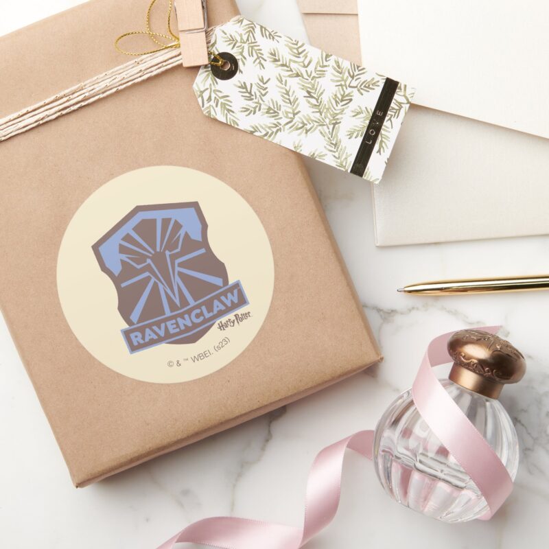 HARRY POTTER™ Summer Magic RAVENCLAW™ Crest Classic Round Sticker vinyl sticker, waterproof durable collectible sticker for laptop, phone, bottle, bike, notebook, helmet, and accessories.