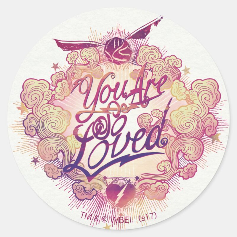 Harry Potter You Are So Loved Classic Round Sticker vinyl sticker, waterproof durable collectible sticker for laptop, phone, bottle, bike, notebook, helmet, and accessories.