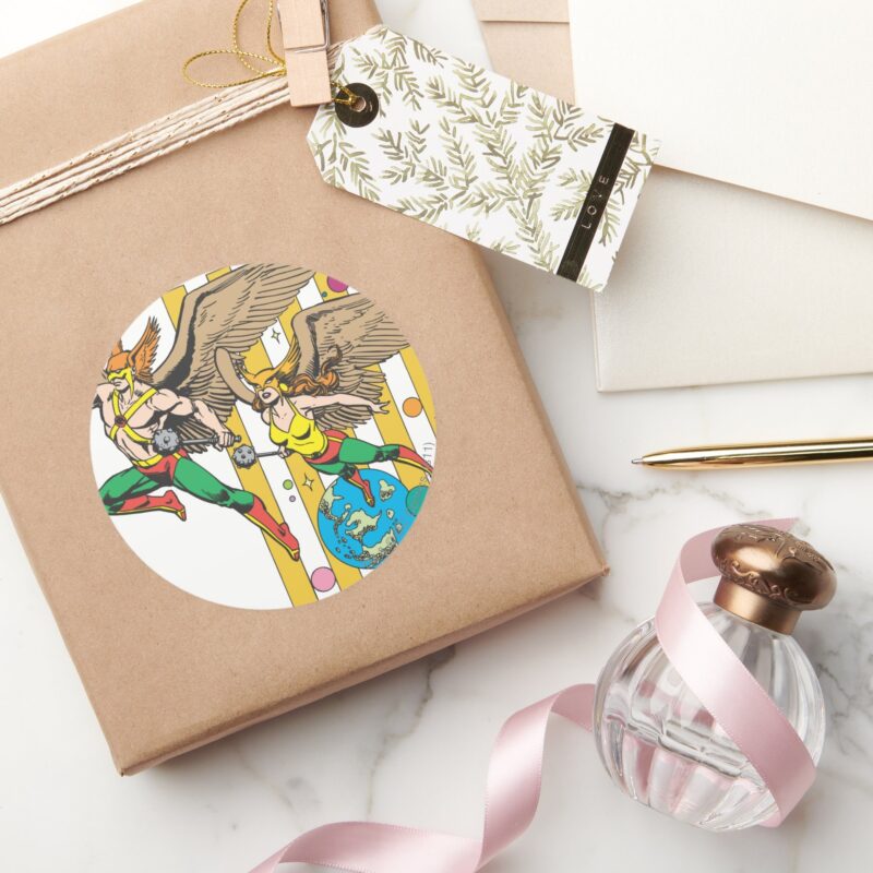 Hawkman Hawkwoman Classic Round Sticker vinyl sticker, waterproof durable collectible sticker for laptop, phone, bottle, bike, notebook, helmet, and accessories.