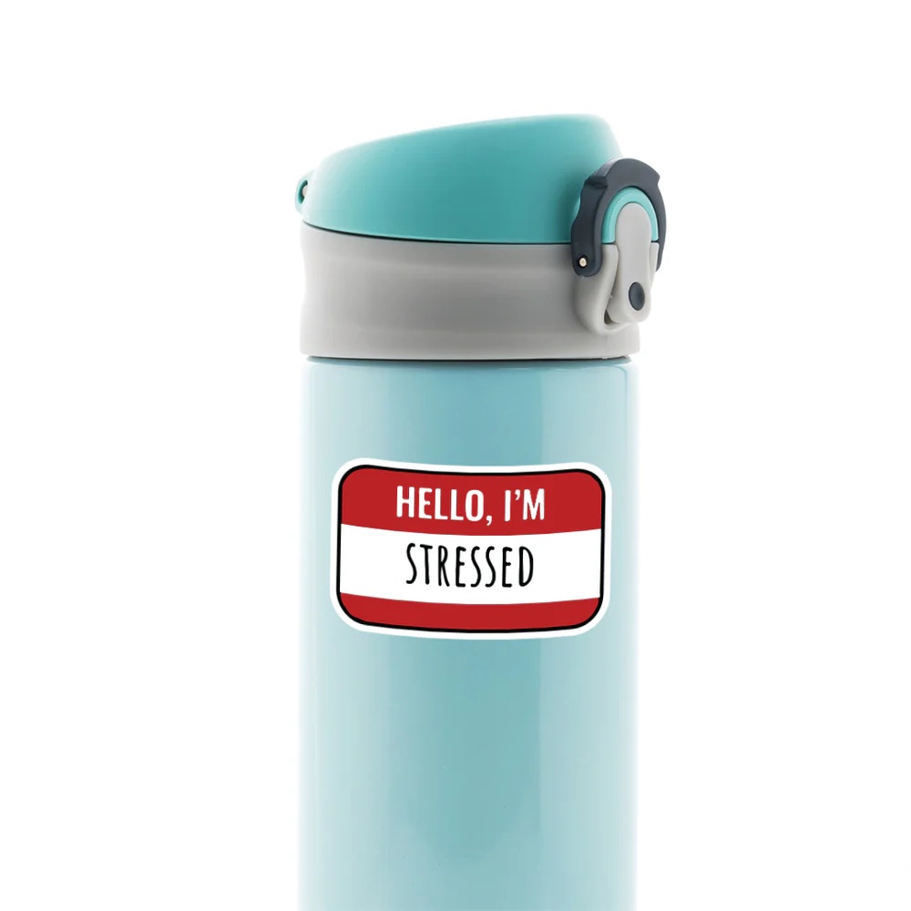 Hello Im Stressed Witty Stickers vinyl sticker, waterproof durable collectible sticker for laptop, phone, bottle, bike, notebook, helmet, and accessories.