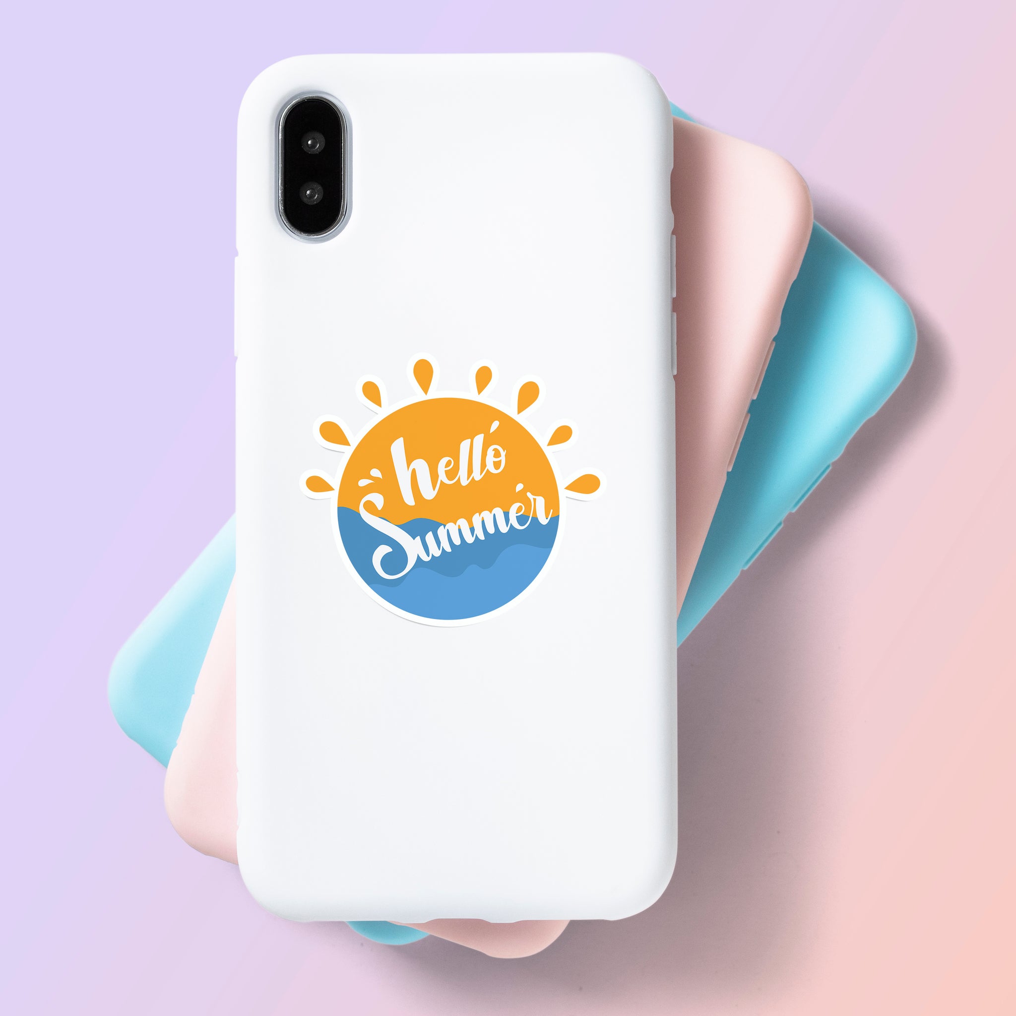 Hello Summer vinyl sticker, waterproof durable collectible sticker for laptop, phone, bottle, bike, notebook, helmet, and accessories.