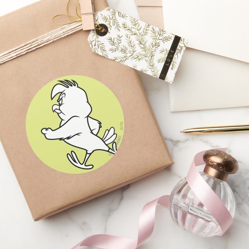 Henery Hawk Walking Classic Round Sticker vinyl sticker, waterproof durable collectible sticker for laptop, phone, bottle, bike, notebook, helmet, and accessories.