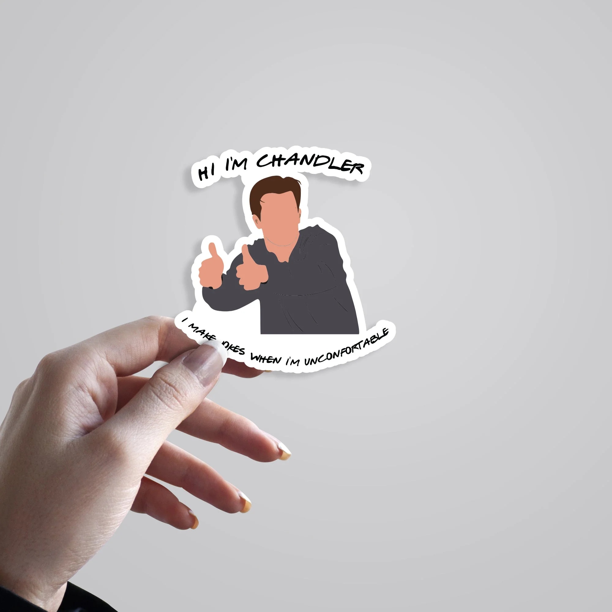 Hi Im Chandler TV Shows Stickers vinyl sticker, waterproof durable collectible sticker for laptop, phone, bottle, bike, notebook, helmet, and accessories.