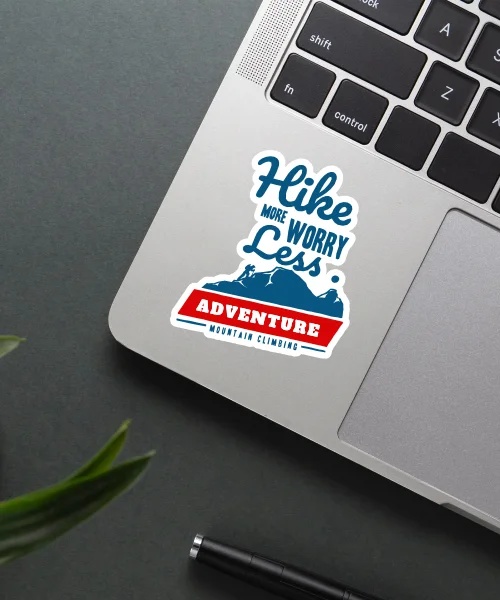 Hike More Worry Less Sticker vinyl sticker, waterproof durable collectible sticker for laptop, phone, bottle, bike, notebook, helmet, and accessories.