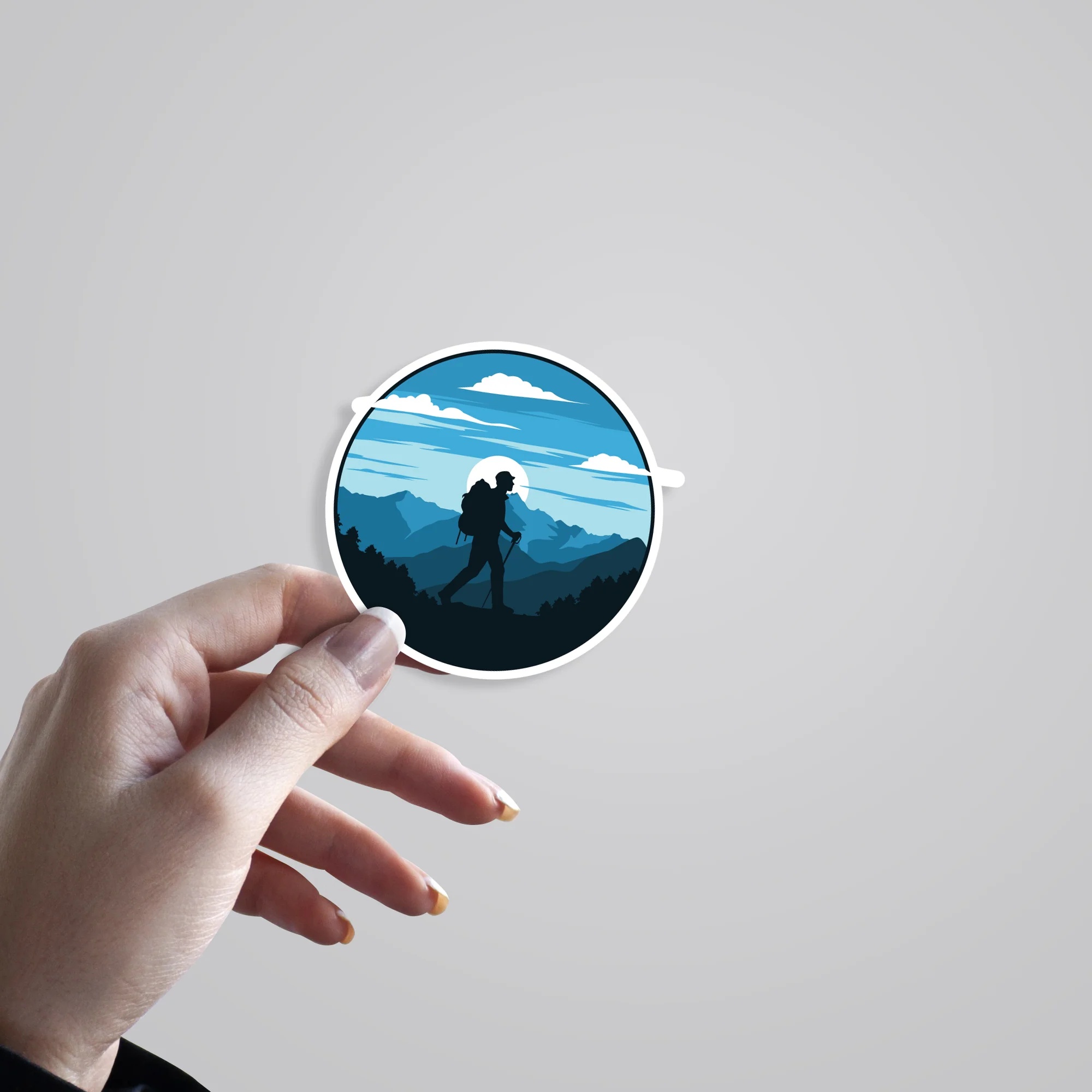 Hiking Travels Stickers vinyl sticker, waterproof durable collectible sticker for laptop, phone, bottle, bike, notebook, helmet, and accessories.