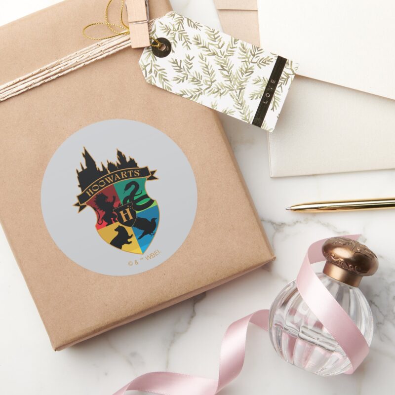 HOGWARTS™ Castle Crest House Pride Badge Classic Round Sticker vinyl sticker, waterproof durable collectible sticker for laptop, phone, bottle, bike, notebook, helmet, and accessories.