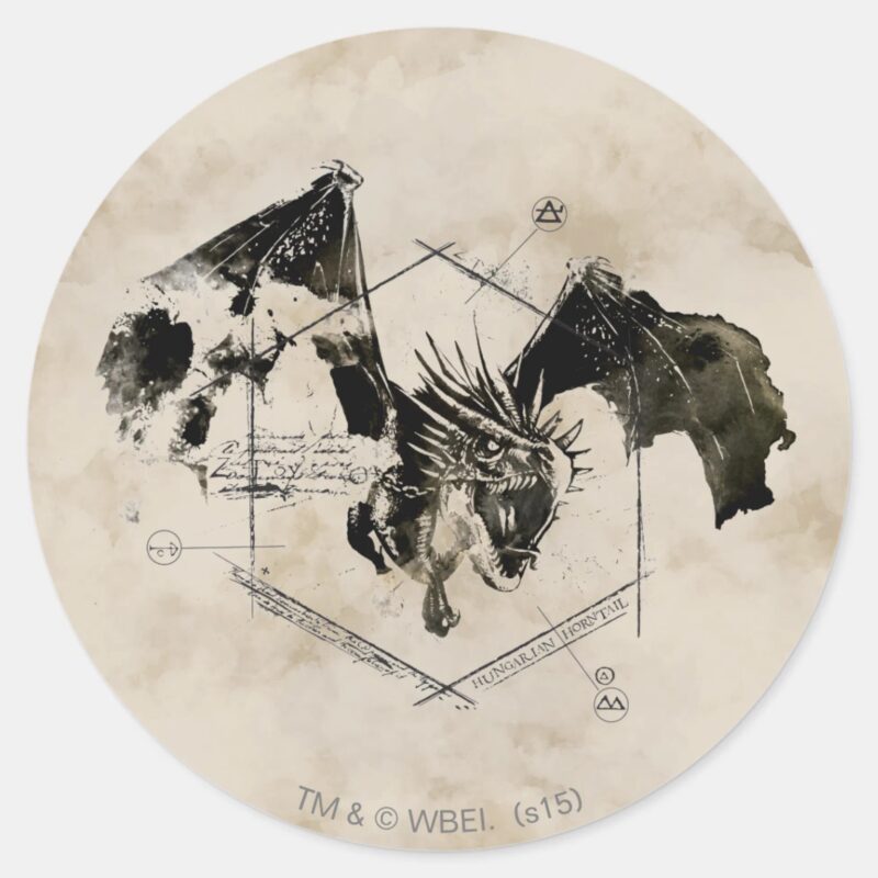 Hungarian Horntail Dragon Classic Round Sticker vinyl sticker, waterproof durable collectible sticker for laptop, phone, bottle, bike, notebook, helmet, and accessories.