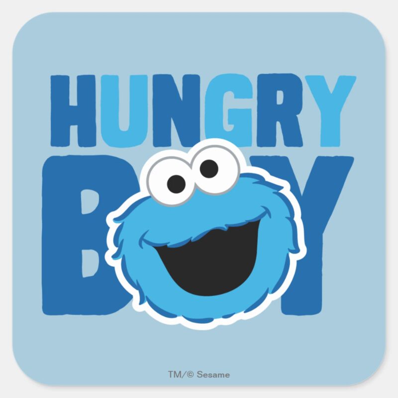 Hungry Cookie Monster Square Sticker vinyl sticker, waterproof durable collectible sticker for laptop, phone, bottle, bike, notebook, helmet, and accessories.