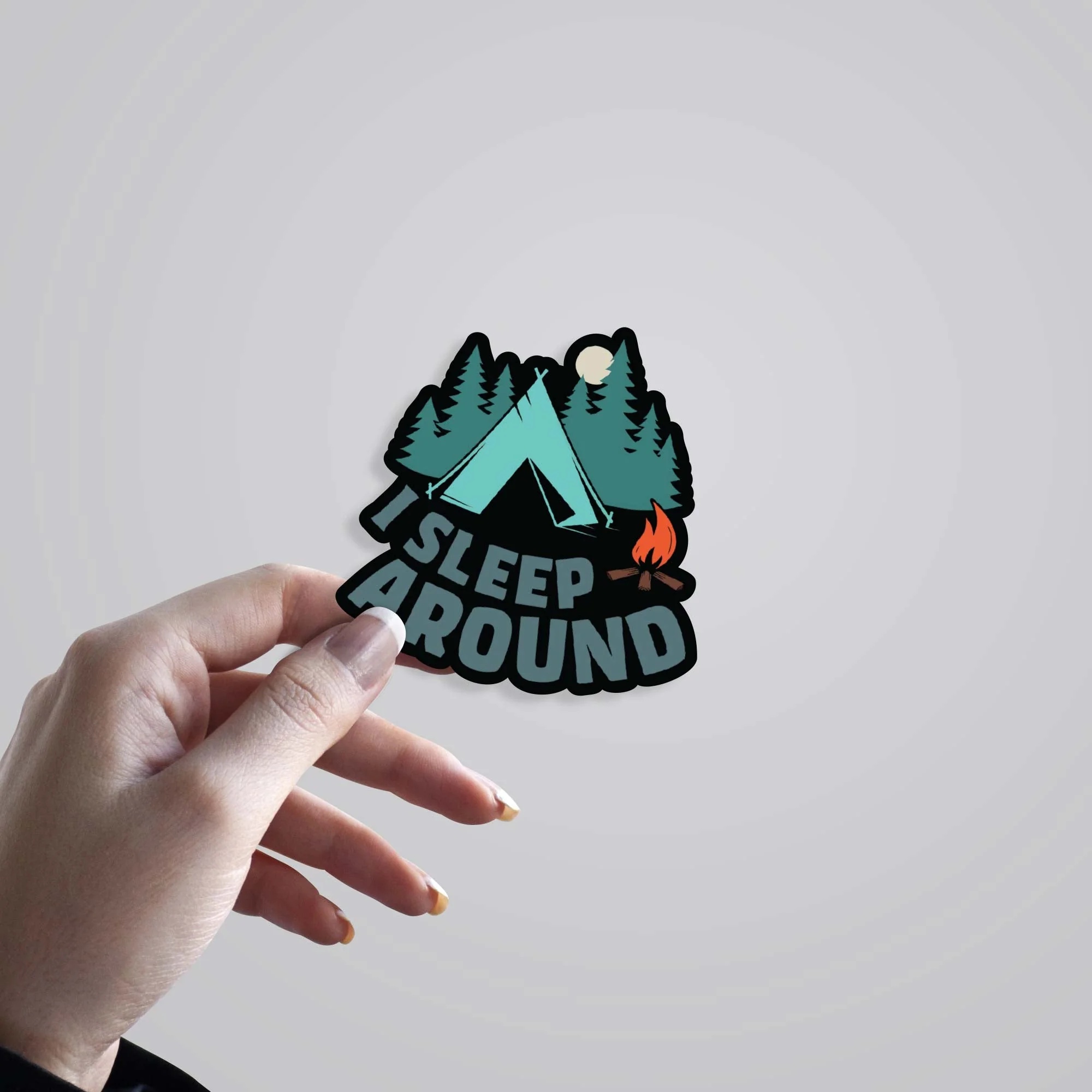 I Sleep Around Travels Stickers vinyl sticker, waterproof durable collectible sticker for laptop, phone, bottle, bike, notebook, helmet, and accessories.
