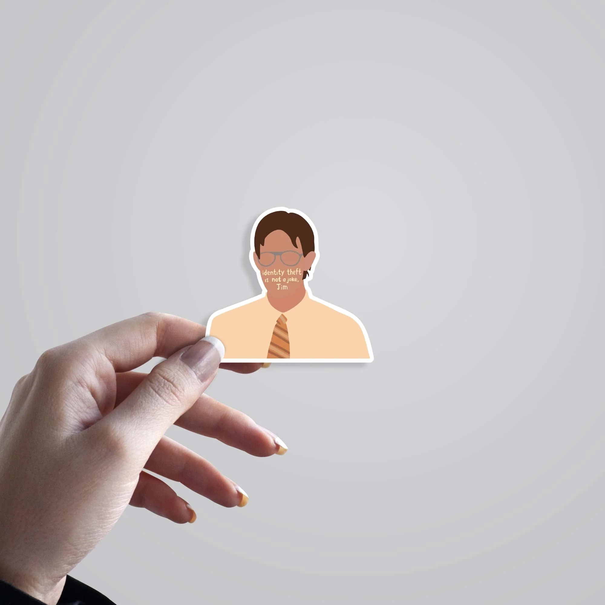 Identify Theft Is Not A Joke Jim TV Shows Stickers vinyl sticker, waterproof durable collectible sticker for laptop, phone, bottle, bike, notebook, helmet, and accessories.