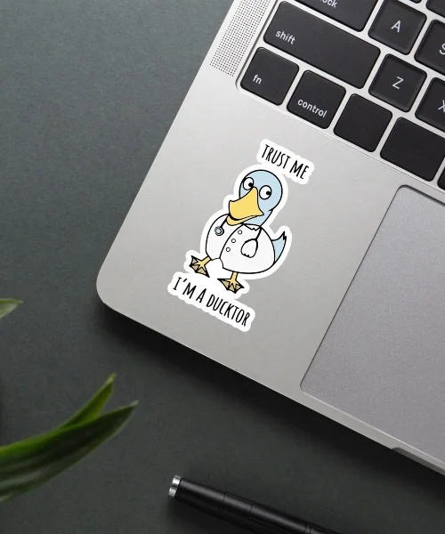 Im A Ducktor Sticker vinyl sticker, waterproof durable collectible sticker for laptop, phone, bottle, bike, notebook, helmet, and accessories.
