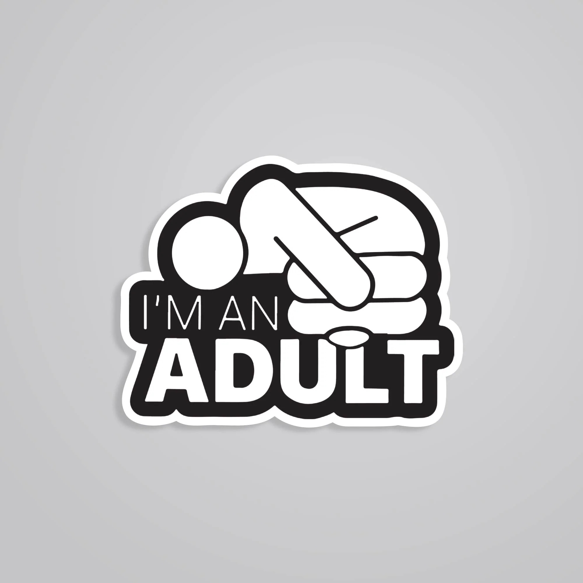 Im An Adult Witty Stickers vinyl sticker, waterproof durable collectible sticker for laptop, phone, bottle, bike, notebook, helmet, and accessories.
