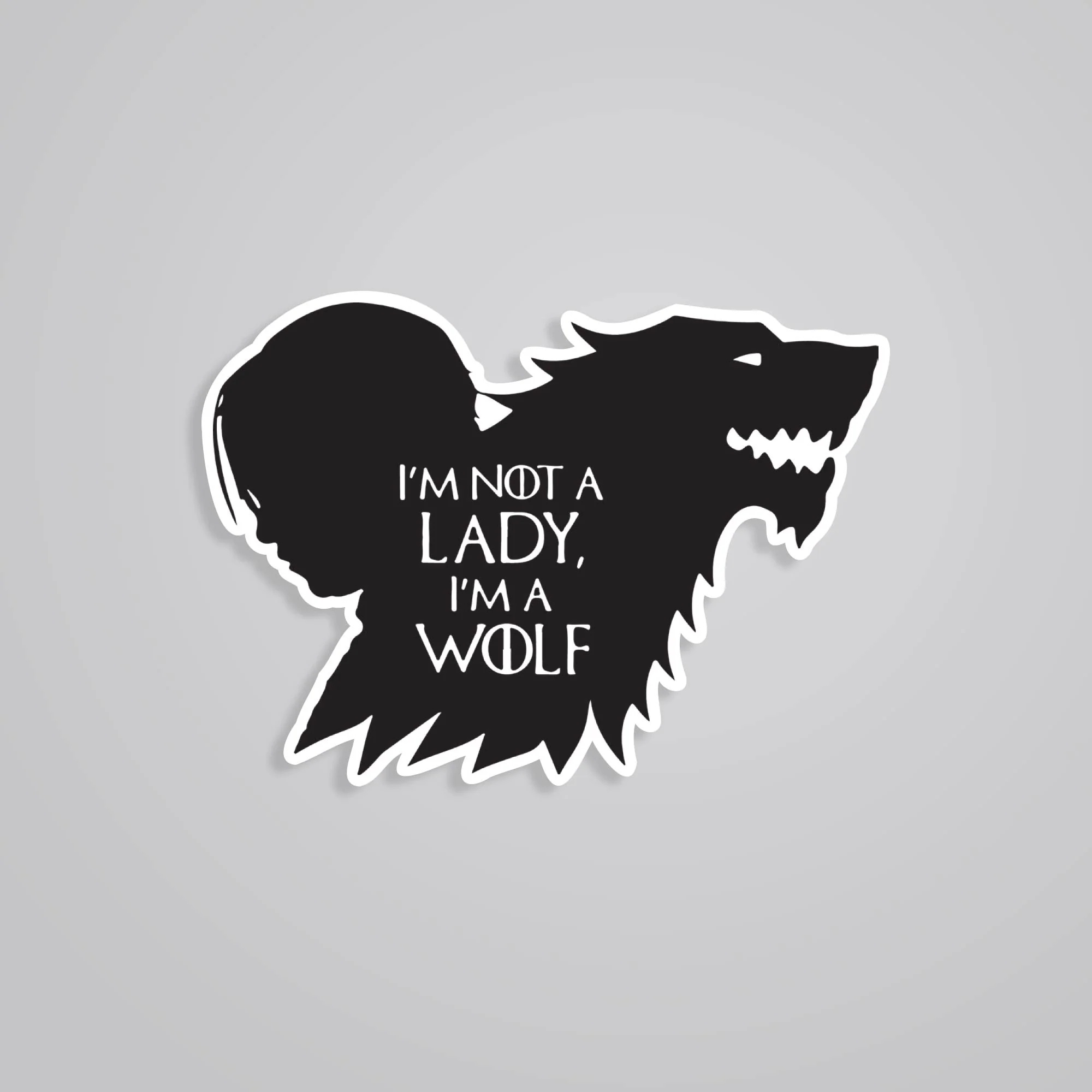Im Not A Lady Im A Wolf TV Shows Stickers vinyl sticker, waterproof durable collectible sticker for laptop, phone, bottle, bike, notebook, helmet, and accessories.