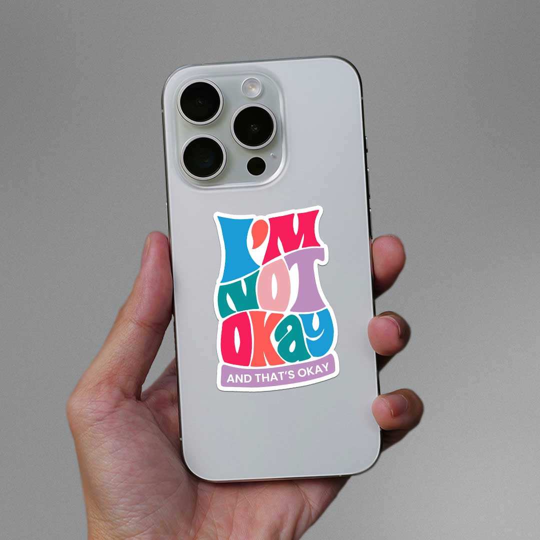 Im Not Okay And Thats Okay Sticker vinyl sticker, waterproof durable collectible sticker for laptop, phone, bottle, bike, notebook, helmet, and accessories.