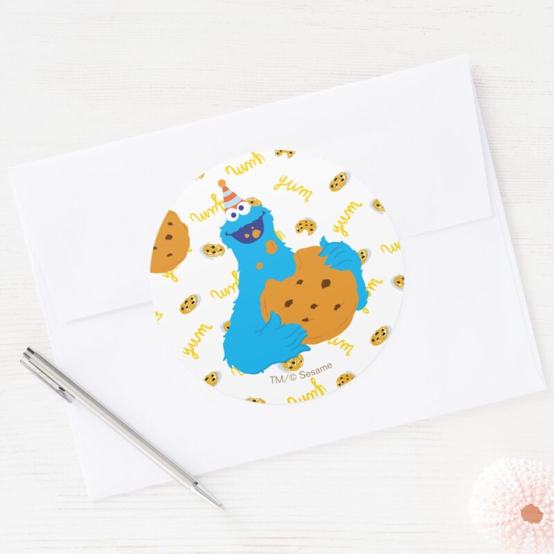 Its A Cookie Party Pattern Classic Round Sticker vinyl sticker, waterproof durable collectible sticker for laptop, phone, bottle, bike, notebook, helmet, and accessories.