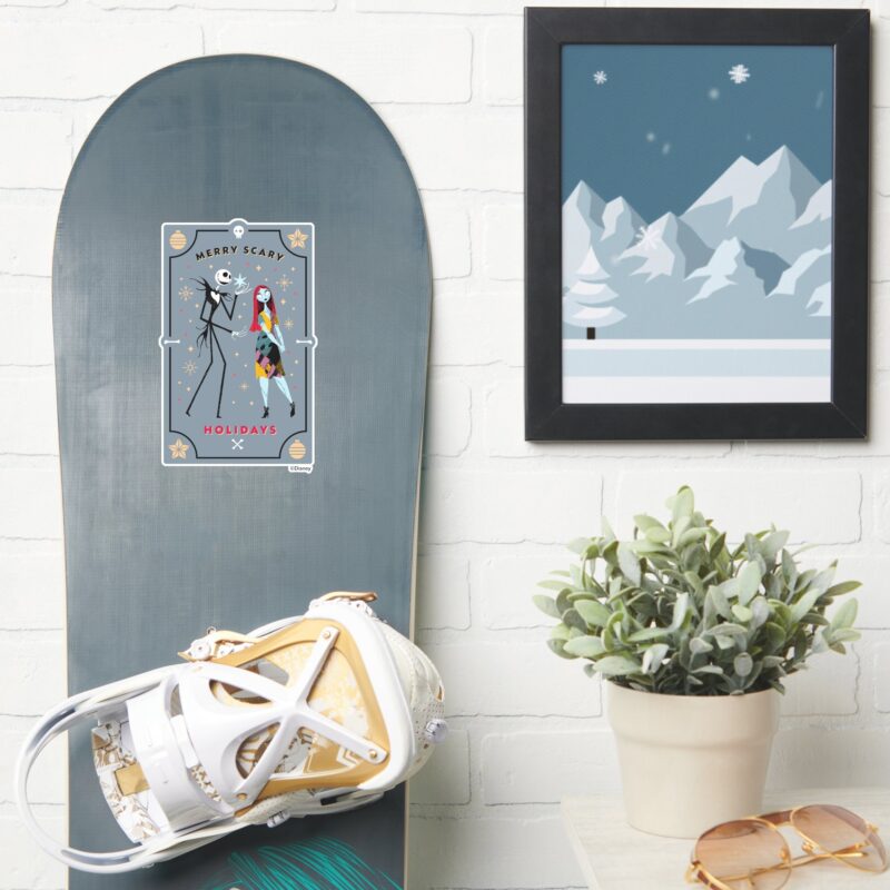 Jack Sally Merry Scary Holidays Sticker vinyl sticker, waterproof durable collectible sticker for laptop, phone, bottle, bike, notebook, helmet, and accessories.