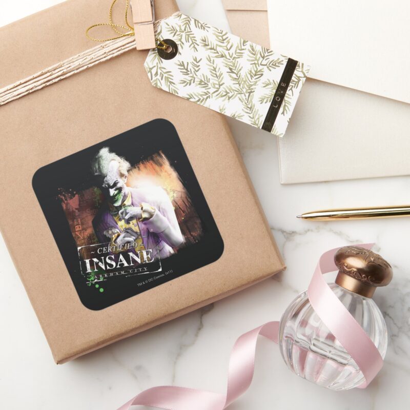 Joker Certified Insane Square Sticker vinyl sticker, waterproof durable collectible sticker for laptop, phone, bottle, bike, notebook, helmet, and accessories.