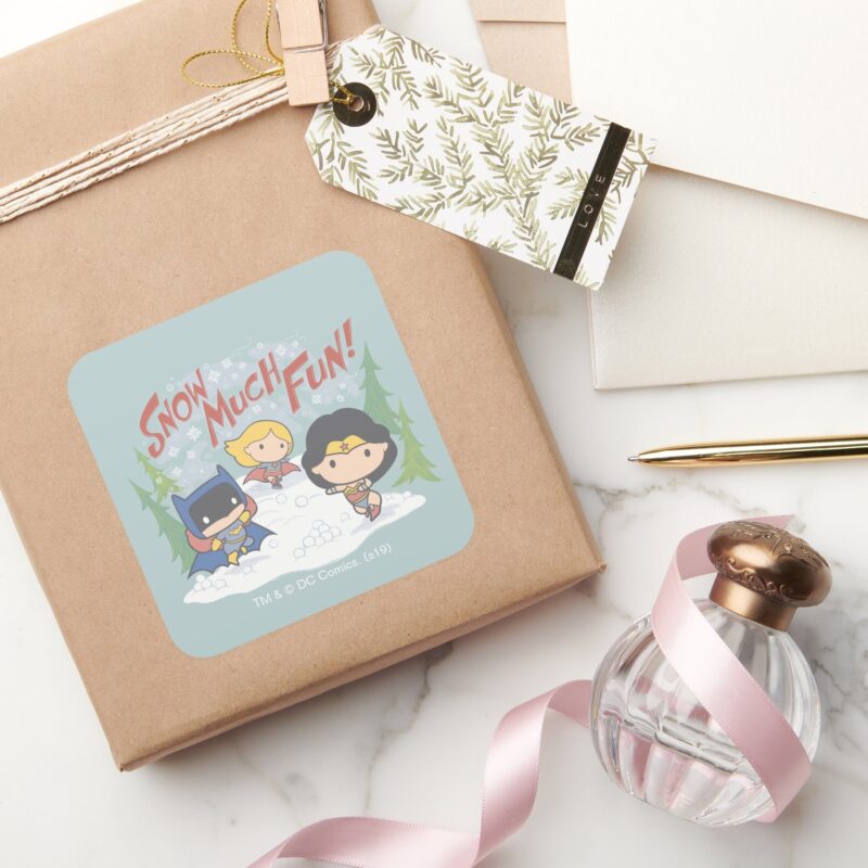 Justice League Chibi Snowball Fight Square Sticker