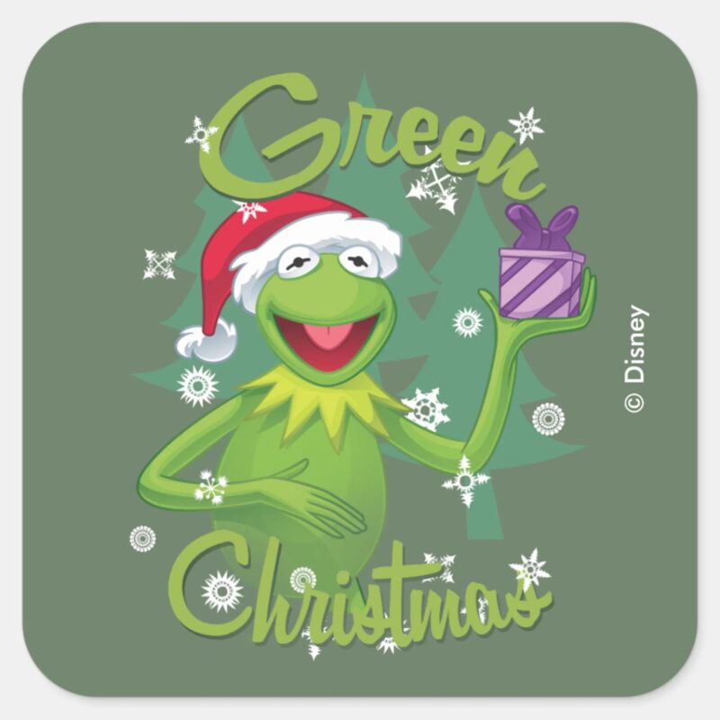 Kermit The Frog Green Christmas Square Sticker vinyl sticker, waterproof durable collectible sticker for laptop, phone, bottle, bike, notebook, helmet, and accessories.