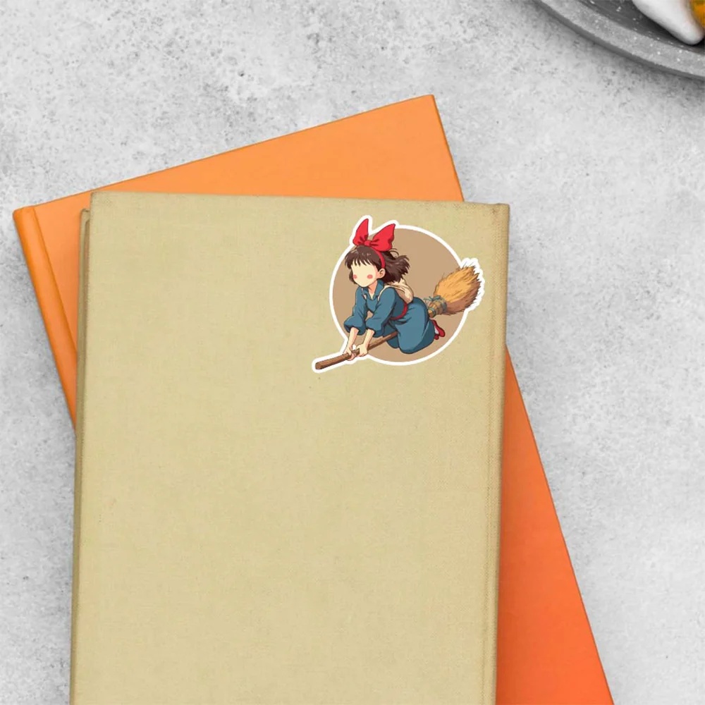 Kiki On Her Broom Anime Stickers vinyl sticker, waterproof durable collectible sticker for laptop, phone, bottle, bike, notebook, helmet, and accessories.